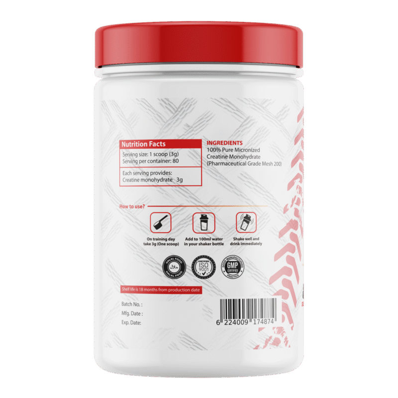 Crea Power is a premium creatine monohydrate supplement that boosts strength, endurance, and muscle growth. Each serving delivers 5g of ultra-pure creatine with no fillers, additives, sugar, or flavors. With 80 servings per container, it provides long-lasting support for athletes and fitness enthusiasts aiming to enhance performance and recovery