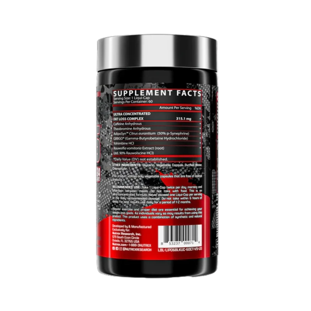 LIPO-6 BLACK ULTRA CONCENTRATE by Nutrex Research is an ultra-concentrated, super-potent, one-pill-only fat destroyer designed to rapidly destroy body fat deposits. This powerful formula helps to fire up your metabolism, support appetite control, and provide you with high-energy and focus to push through your workouts and daily activities.