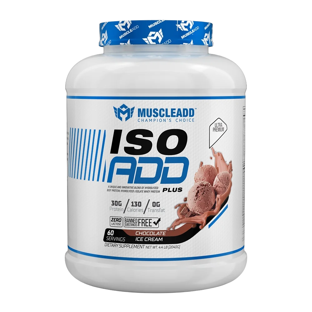 Experience the champion’s choice with MuscleAdd ISO Add Plus. This ultra-premium protein powder features a unique and innovative blend of fast-absorbing hydrolyzed beef protein isolate and hydrolyzed whey protein isolate. It’s designed for serious athletes who demand the best for muscle growth and recovery, all while being zero lactose and banned substance free.