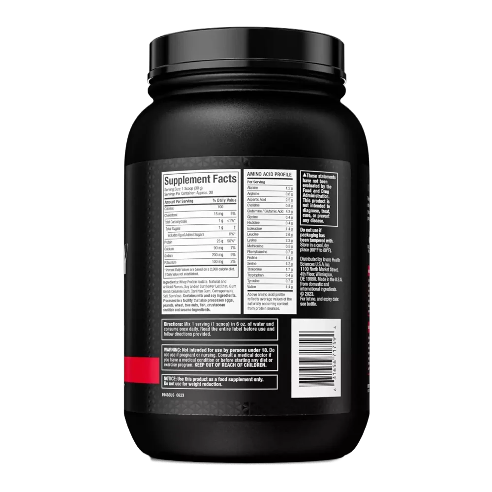Fuel your muscles with the clean, high-quality power of Muscletech IsoWhey. This formula features 100% whey protein isolate for rapid absorption and digestion, making it the perfect choice to support muscle growth and recovery. With 25g of protein, 11g of naturally occurring EAAs, and 0g of added sugars, IsoWhey is the premium choice for athletes and fitness enthusiasts.