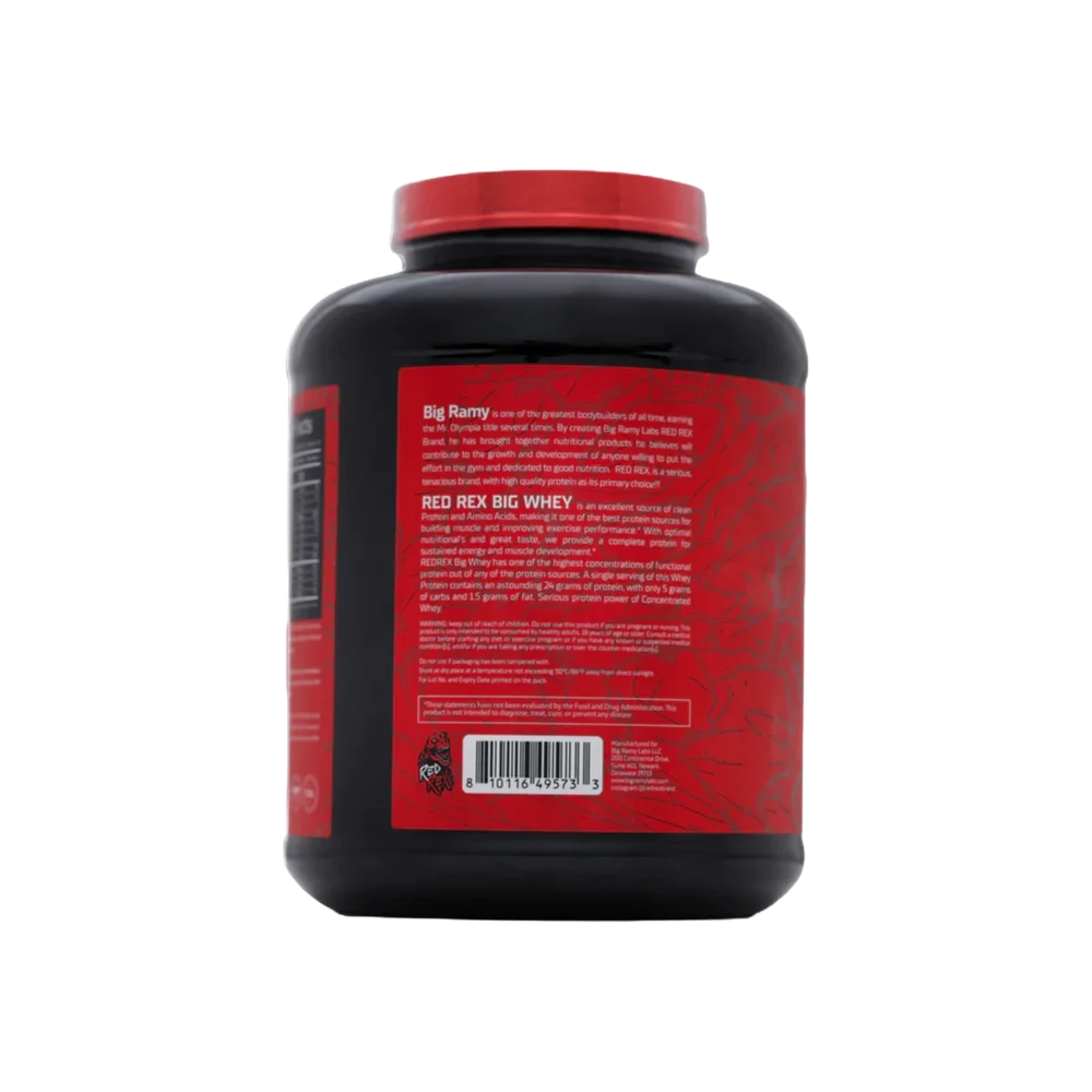 Fuel your muscles with Red Rex Big Whey by Big Ramy Labs, the ultimate protein formula for building bigger, stronger muscles. This advanced whey protein blend provides 24 grams of high-quality protein per serving to support muscle growth and accelerate recovery. With an incredible taste and zero added sugar, it’s the perfect clean protein to help you achieve your physique goals.