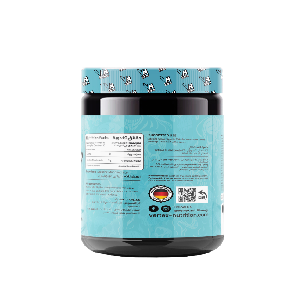 Crea-V® by Vertex Nutrition features Creapure®, the gold standard of creatine monohydrate known worldwide for its exceptional purity and quality. This premium formula is designed for elite athletes who settle for nothing but the best to fuel their muscles, enhance explosive power, and achieve peak athletic performance.